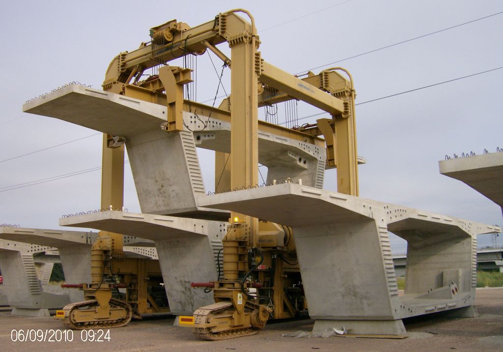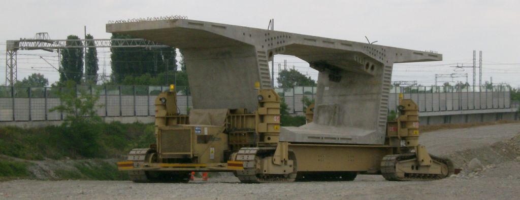 kN per conci prefabbricati, dotato di 4 cingoli sterzanti a 90°, motorizzazione diesel, radiocomandato |