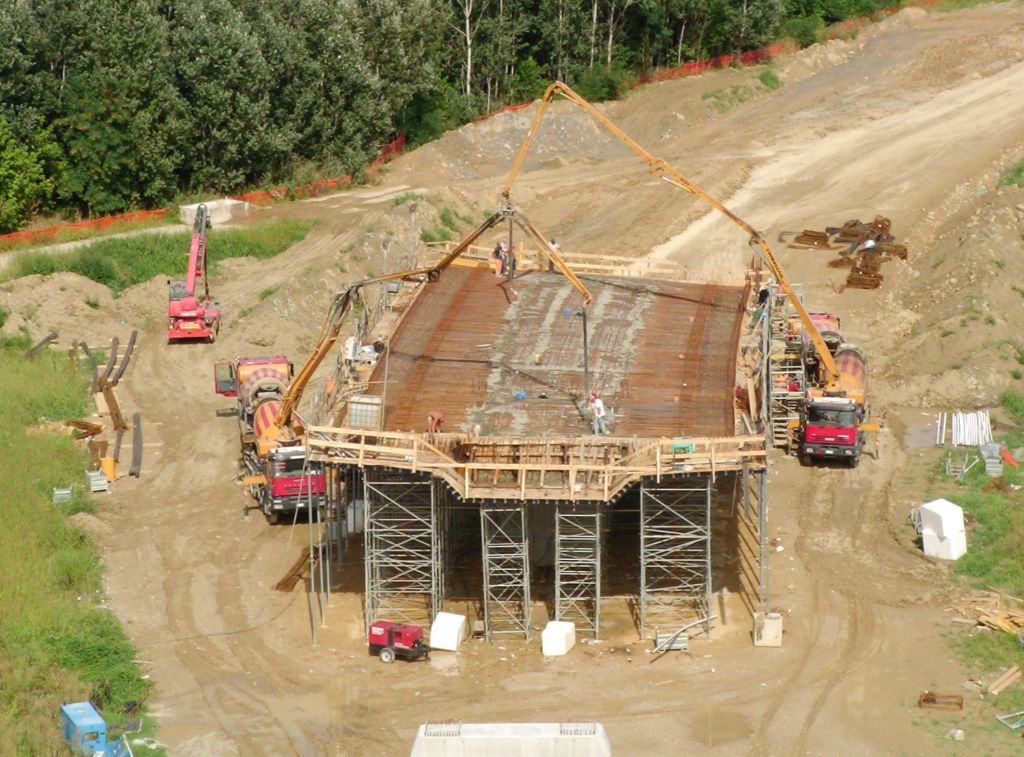 ferri di armatura e nel getto del calcestruzzo, sia per l'impalcato del