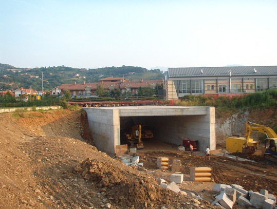 Launching operation of a railway underpass in Pinerolo (Turin) for Olimpia 2006 scarl (Torino Scavi/Manzone spa)